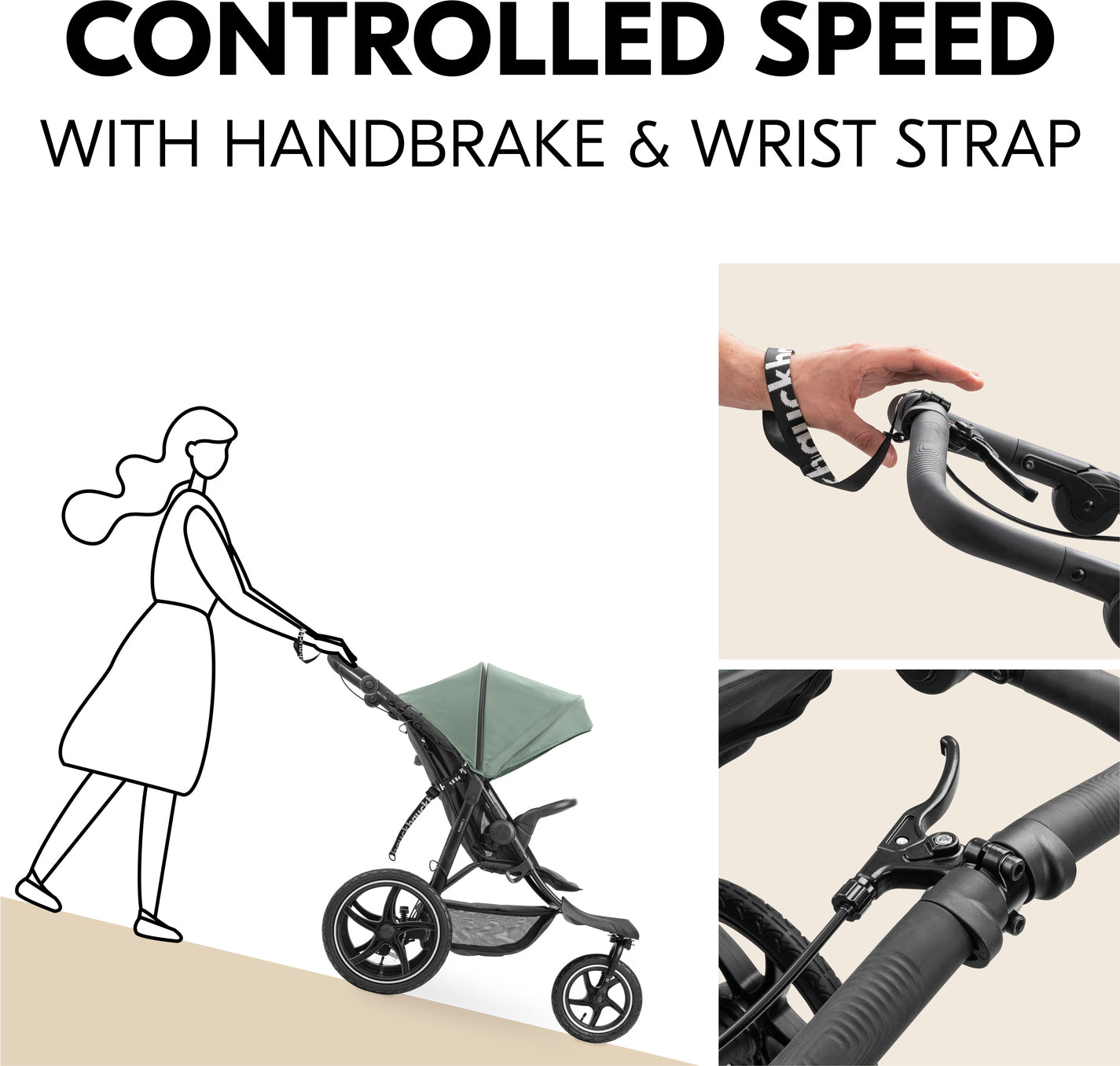 Uphill and down – with the handbrake, you also have good control of your speed. And the height-adjustable