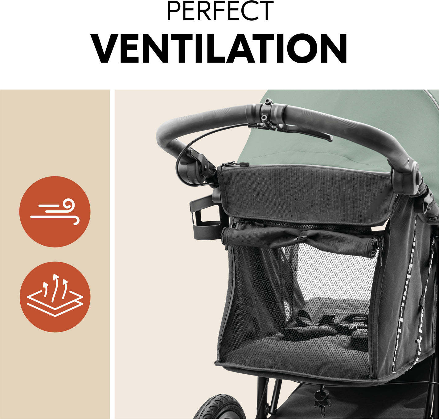 Taking the baby things with you? Everything fits in the large, lockable basket – and nothing falls out. Keep your