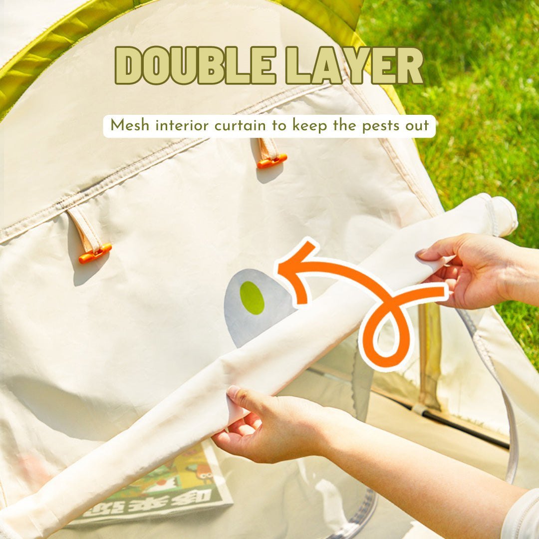 - تصميم مزدوج الطبقات: بفضل هيكله المزدوج الطبقات، يوفر الخيمة عزلًا وحماية معززين. تعمل الطبقة الخارجية على حماية المنزل من العوامل الجوية، بينما توفر الستائر الشبكية للطبقة الداخلية التهوية والحماية من الحشرات.