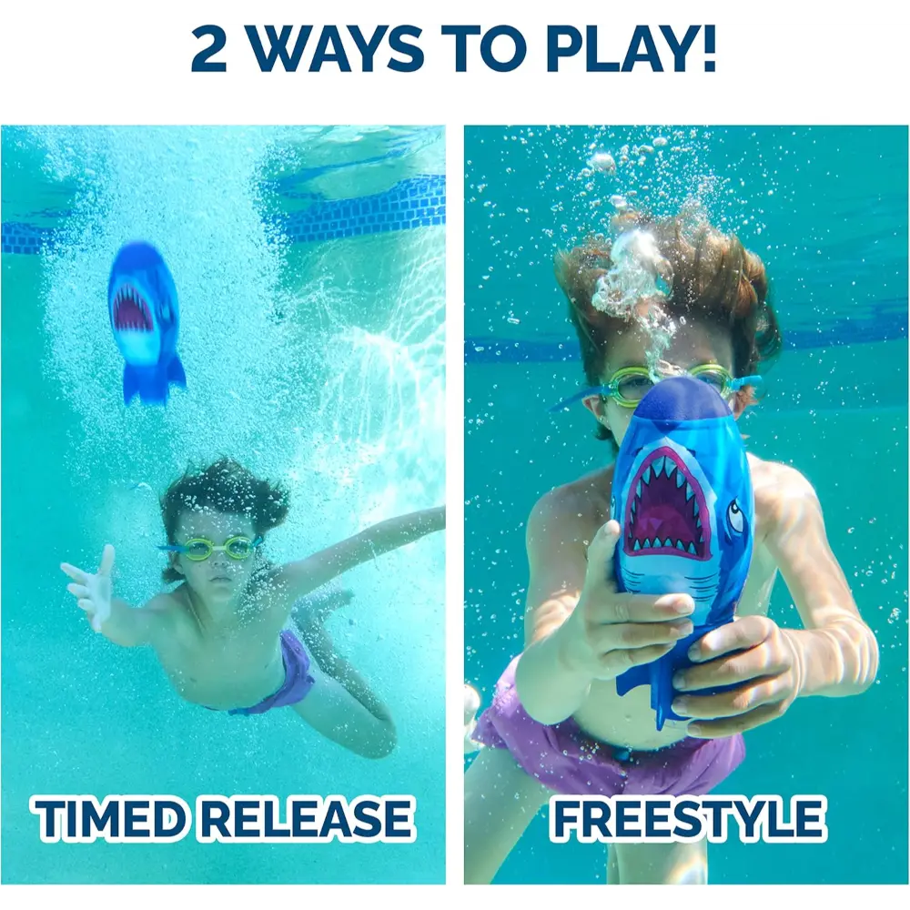 - 2 WAYS TO PLAY: Submerge the pool tor, point in any direction, and release for a quick blast off, or use the suction to stick it to the bottom of the pool and wait 10 seconds for it to blast on its own!