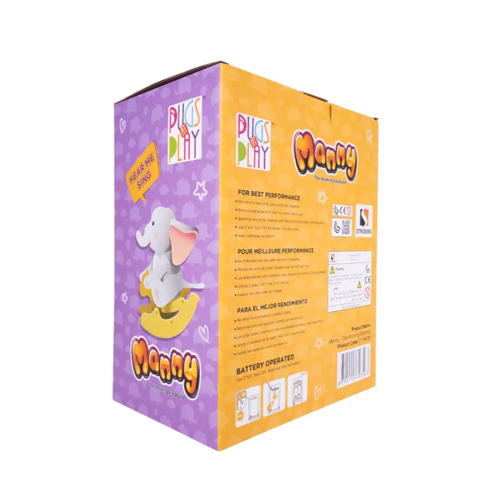 Introducing the magnificent Manny Rocking Elephant B/O, a truly remarkable addition to your child's playtime experience. This enchanting toy combines the joy of rocking with the charm of an adorable elephant, providing endless hours of entertainment and imaginative play. Equipped with a battery-operated mechanism, Manny Rocking Elephant brings an extra element of excitement to the playtime routine. This lovable creature comes to life, Singing, rocking back and forth with a gentle motion that mimics the real movement of an elephant.