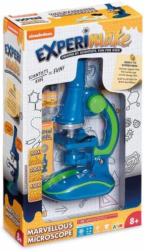 Put on your lab coat! It is time to get experimental with the Nickelodeon Experimake Marvellous Microscope (Styles Vary). This super-cool microscope lets you see things the human eye cannot. Whether you investigate what your favorite cereal looks like close-up or check out the particles in a droplet of fruit juice, this microscope offers up to 450 times magnification. It also includes an LED light to help you see your specimens.