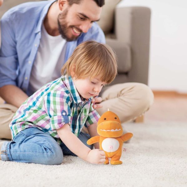 The interactive dinosaur has a cute and adorable look that will make your children fall in love at first sight. This highly soft plush toy will be their new best friend and sleeping partner for cuddling at night. The durable electronic toy has a solid body covered with a soft and smooth plush to make it comfortable. These interactive toys are the perfect way to teach your children new vocabulary and engage them in creating toy games. The funny talking dinosaur repeats everything anyone says in a whistling voice that will make your children laugh for hours. Watch them have unlimited fun and enjoy them so that these times are unforgettable for a lifetime. Batteries not included. Suitable from 3 years.